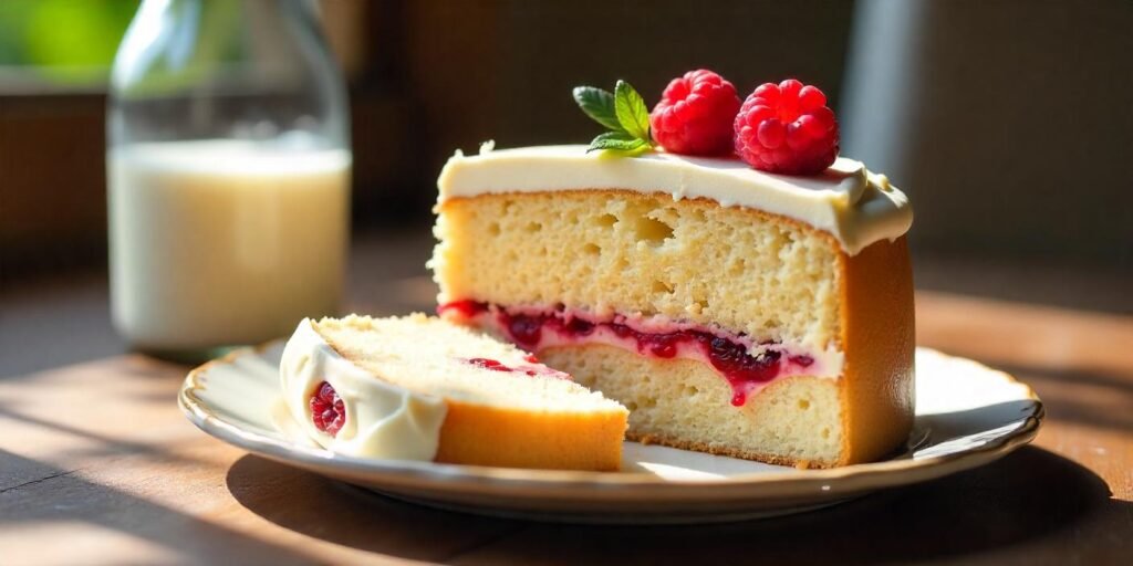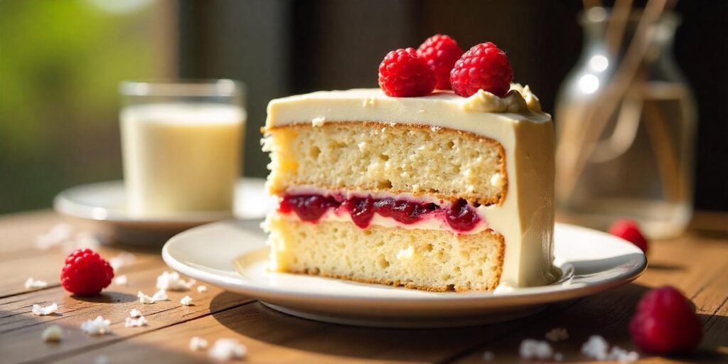 delicious vanilla cake filled with layers of white chocolate ganache and raspberry compote.