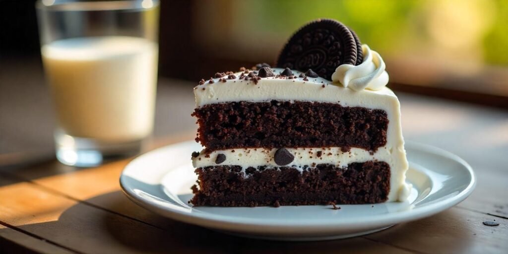 vanilla sponge layers filled with Biscoff paste and frosted with Biscoff swiss meringue buttercream and garnished with Lotus cookies and crumbs