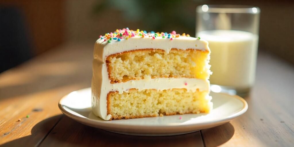 Heavenly layers of vanilla cake with light and airy vanilla swiss meringue buttercream.